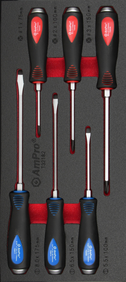 Приобрести T32182 Набор отверток ударных крест и шлиц 6пр., в мягком ложементе от компании AmPro (Тайвань) из раздела Ложементы мягкие (VA серия)