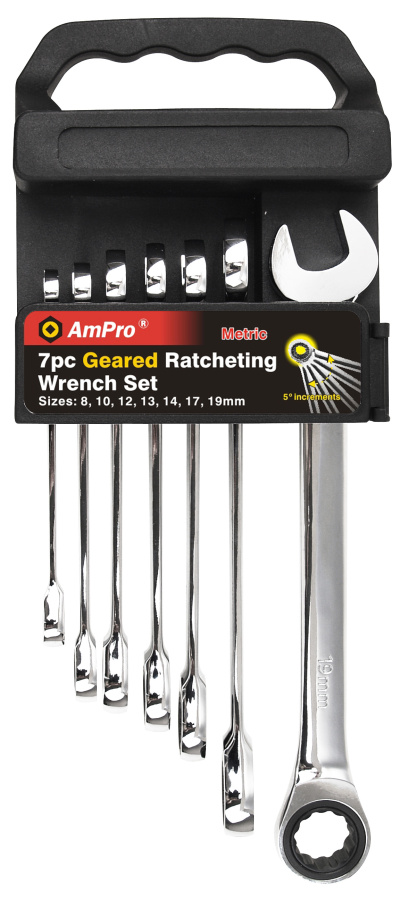 Приобрести T41483 Набор ключей комбинированных трещеточных ,7 предметов (10-19мм) от компании AmPro (Тайвань) из раздела Наборы ключей