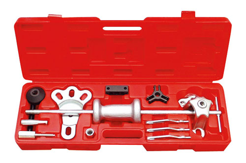 Универсальный инерционный съемник может быть использован для демонтажа полуоси, ступицы и барабанов, подшипников, шестерней, втулок, а также в работах жестянщика.
