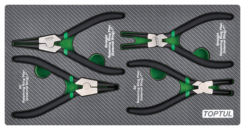 Приобрести Набор съемников стопорных колец 4 предмета в мягком ложементе TOPTUL GEA0408 от компании Toptul (Тайвань) из раздела Губцевый инструмент по цене 6 517 рублей.
