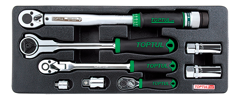 Набор трещоток 1/4", 3/8", 1/2", динамометрический ключ 3/8" 20-110 Нм, переходники и свечные головки, 8 предметов в ложементе (B) TOPTUL купить в Хабаровске и других городах России