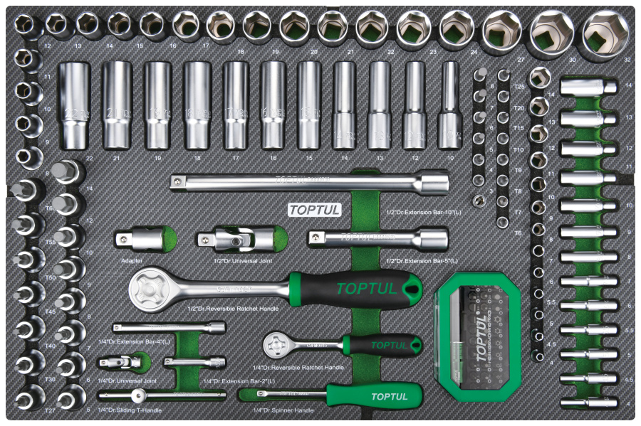 Набор головок и аксессуаров 1/4" и 1/2" 6-гр.,133 пр. в мягком ложементе TOPTUL GEDD348 купить в Хабаровске и других городах России