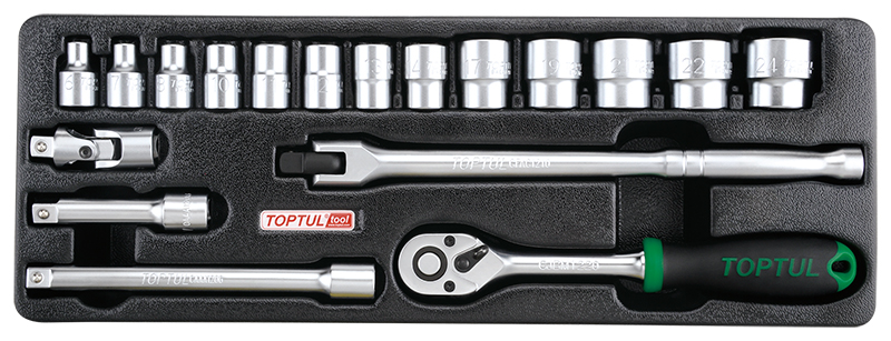 Набор головок и аксессуаров 3/8" 6-24 мм, 18 предметов в ложементе (A) TOPTUL GCAT1808 купить в Хабаровске и других городах России
