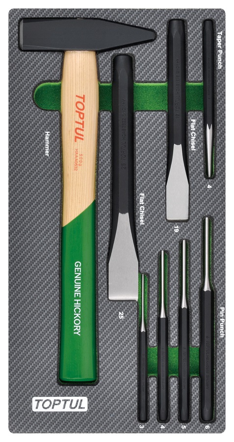 Набор инструментов, молоток, выколотки и зубила 8 пр. в мягком ложементе TOPTUL
