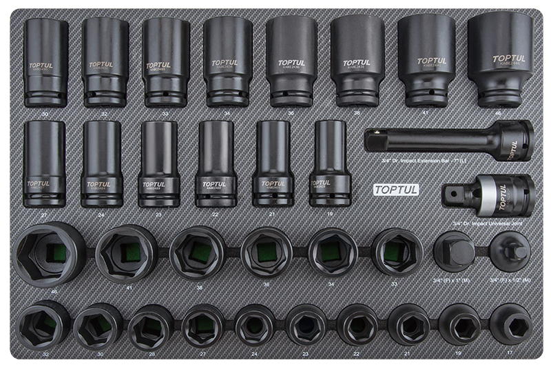 Приобрести Набор ударных головок 3/4'' 17-46 мм короткие и длинные, 34 пр. в мягком ложементе (D) TOPTUL от компании Toptul (Тайвань) из раздела Ударный инструмент по цене 49 724 рублей.