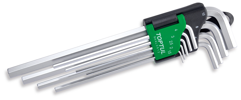 Набор шестигранников Г-образных 1,5-10 мм, экстрадлинные, 9 пр. TOPTUL