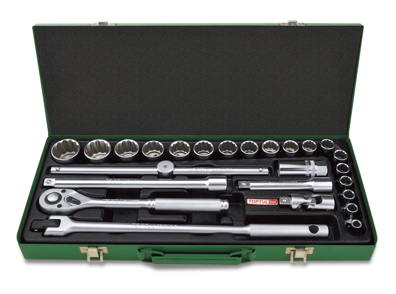 Набор головок и аксессуаров 1/2" 12-гранных 8-32мм, 25 предметов в метал. кейсе TOPTUL GCAD2510 купить в Хабаровске и других городах России