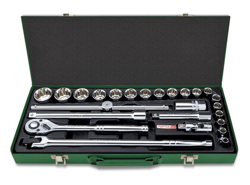 Набор головок и аксессуаров 1/2" 12-гранных дюймовых 5/16"-1-1/4", 25 предметов в метал.кейсе TOPTUL GCAD2514 купить в Хабаровске и других городах России