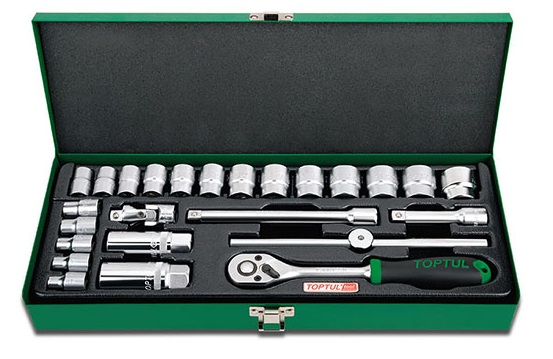 Набор головок и аксессуаров 3/8" 12-гранных 6-24 мм, 25 предметов в метал. кейсе TOPTUL GCAD2504 купить в Хабаровске и других городах России