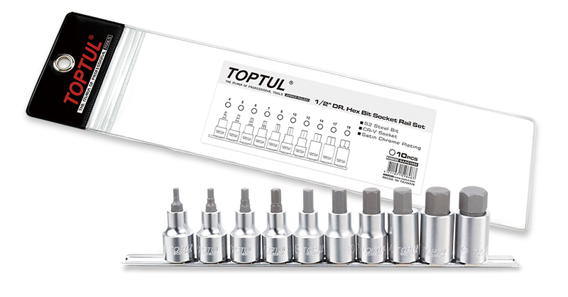 Приобрести Набор торцевых головок 1/2" с шестигранными вставками 4-19 мм L=55 мм на планке 10 предметов TOPTUL от компании Toptul (Тайвань) из раздела Торцевые головки с вставкой HEX по цене 3 272 рублей.